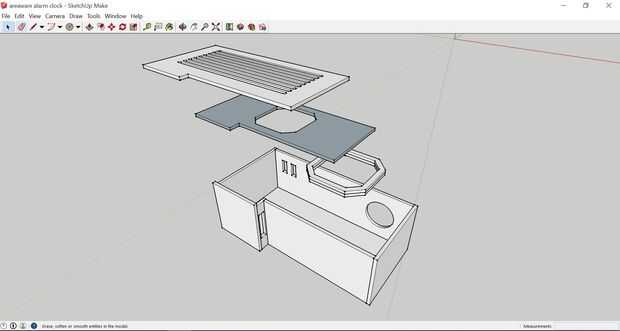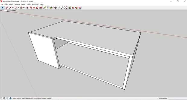 Ahora comienzan a crear líneas de paredes de placas. Dibujar un cuadrado y tire de ella hacia arriba hasta la altura de su material. Para mi reloj usé 3 m m MDF. Asegúrese de que cada placa/pared usted diseñar y no te olvides de los agujeros para el soporte de altavoz de los cables de los interruptores de diseño del grupo.