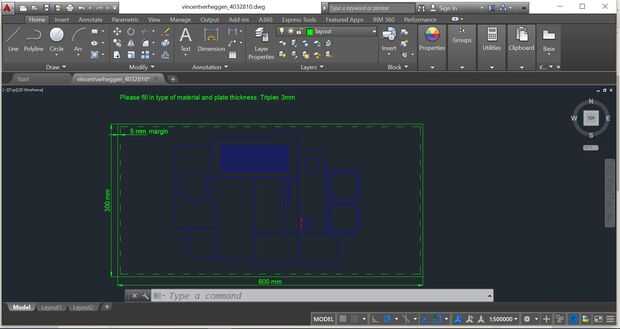 Para cortar el MDF de 3 mm usé un lasercutter. La empresa que ejecute estas cosas tiene un manual sobre como recibir la información. He descargado Autocad para hacer el archivo. Puede descargar Autocad para cuota aquí si eres un estudiante.