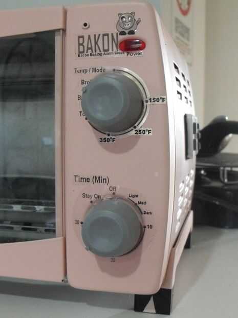 Con BAKON sólo tiene que colocar su tocino congelado la noche antes de configurar la alarma y va a la cama para luego despertar a un listo para comer la deliciosa paz crujiente de bacon.