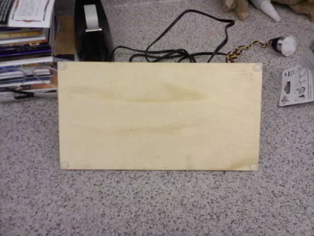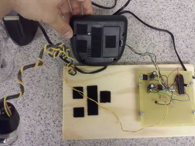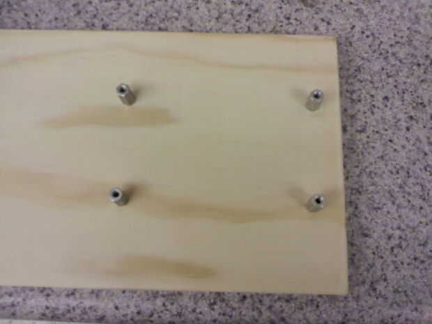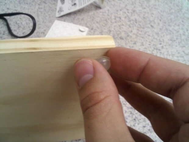 Para colocar la Junta, utilicé cuatro montajes de PCB. Tenía un threading broca disponible, pero no era necesario. Si no tienes un poco de roscado, simplemente haga un agujero que es más pequeño que el tornillo y gire con unos alicates. Os adjunto el reloj a la base mediante un velcro. No atornille lo hacia abajo ya que mi reloj tiene un respaldo de batería cuando la batería muere, tendrá que reemplazar. Por último, he añadido unos pies de goma en las esquinas.