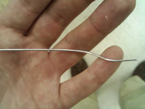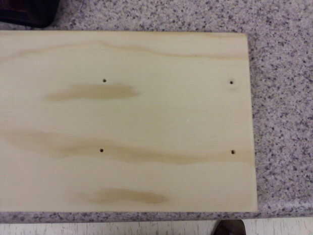 Para sujetar el cuello ajustable, que perforó un agujero de 7/64 inch en la base de madera y había pegado el cable. Que encaje muy bien así que no es necesario pero está suelto bastante el girarse y torcido el cuello. Los dos cables del LED pueden ser envuelto alrededor del cuello y soldados a la placa de prototipos.