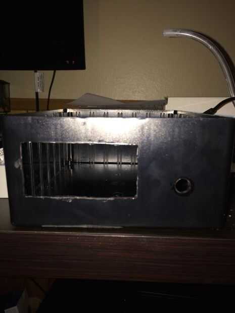 Luego fue hasta la parte más difícil para mí. Nunca he hecho un cerramiento de proyecto como este. Y en realidad tenía tantos problemas tratando de hacerlo parecer decente que dio para arriba y deje que se mira como una mierda. Primero trazó el tamaño de la pantalla LCD y luego con cinta el papel a la caja del proyecto. Luego tomó la rueda de amolar y cortar del tamaño del agujero del LCD. A continuación tomé el taladro y taladrar el hoyo donde montar la boquilla de la pistola. Por último cortar el rectángulo de la Junta de botón. Permitiendo suficiente espacio para los botones para ser sobresaliente. Luego pegar todo en su lugar y se hizo.