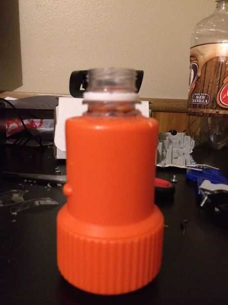 ¡ Pero espere! ¿Cómo pretende la pistola agua disparado hacia fuera?! Pues bien, utilizando el cartucho ca, e con la pistola de agua en que fue capaz de crear un depósito sellado para que el agua contenida. Tomé una botella de agua vacía y cortar la parte superior. Colocan sobre la parte superior del cartucho, de ajuste apretado sobre la junta tórica. Luego caliente pegado el dentro y fuera de él para asegurarse de fue apretado del agua. Entonces tomé el taladro y perforar un agujero en la tapa de la botella. Esto permitió para que Deslice el tubo de la pistola, a través de la tapa. Entonces esta había pegado a la tapa. Entonces puedo llenar el cartucho con agua y enrosque la tapa, sabiendo que no hay agua se escapará!
