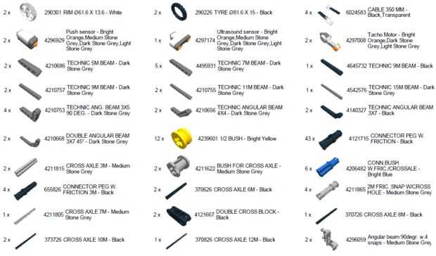 Para comenzar tendremos que recopilar los componentes de la lista de materiales. Estos serán los componentes necesarios para construir nuestro robot. Es posible utilizar sensores y motores de LEGO® Mindstorms® NXT o EV3 para este proyecto.