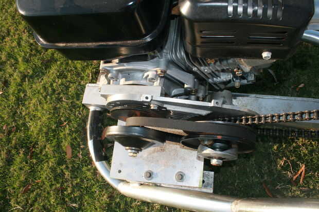 ENERGÍA: Mientras que empecé con el tradicional motor de hp 6.5, subí a 9hp motor Robin Subaru de más RPM, potencia y más larga vida del motor. Muchos constructores hacen un sistema de transmisión de un embrague centrífugo, piñones, rodamientos y cadena pero decidí ir con un Torq a verter de las industrias de la cometa (también llamado TAV2 o CVT). Otra vez no la opción más rentable pero en cuanto a funcionamiento va él no puede ser vencido. Asegúrese y obtener uno que coincida con su motor tamaño de alesaje.
