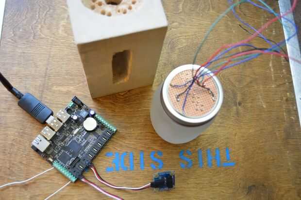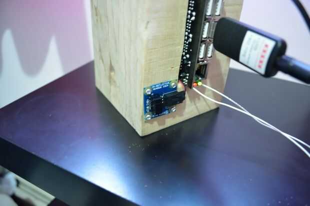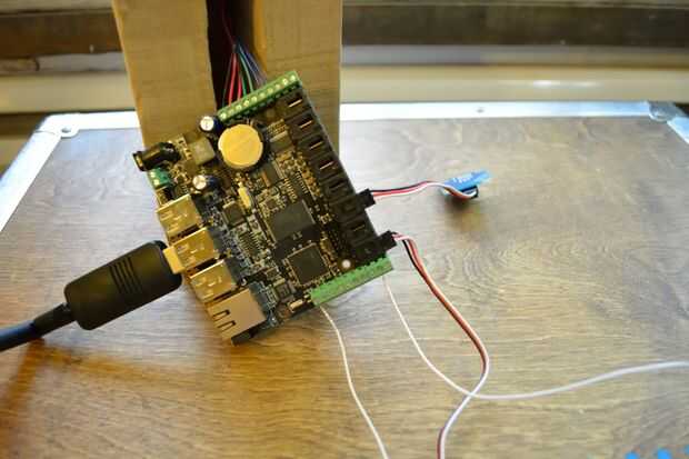 - Deslice el SBC en el orificio en forma de rectángulo. Asegúrelo en su lugar. El hardware de montaje, enrosque el sensor reflexivo de IR sobre el bloque de madera. Lo pongo en la parte posterior para que no obstruya la mirada de la madera.