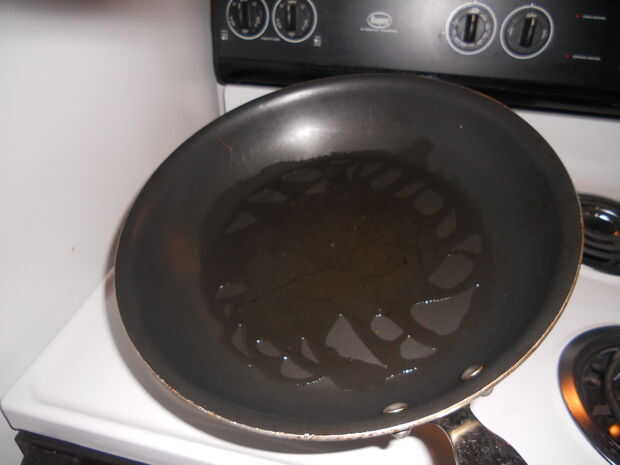 El aceite alrededor de un lado a otro por lo que recorre la parte inferior de la sartén.