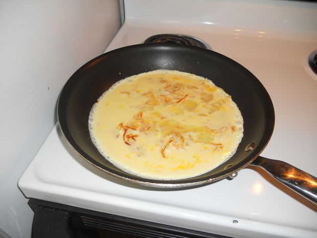 Vierta la mezcla de leche de huevo en la sartén. (Ver imagen)