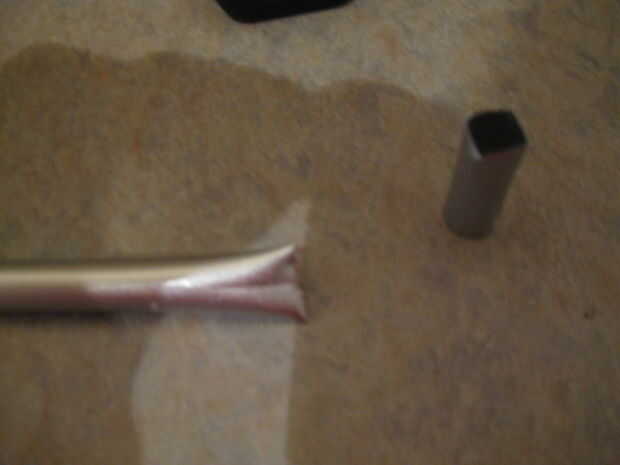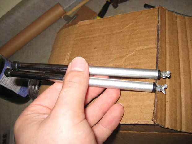 a continuación tomar la pierna extra y cortar dos piezas para hacer el conector para el trípode, como se muestra arriba,