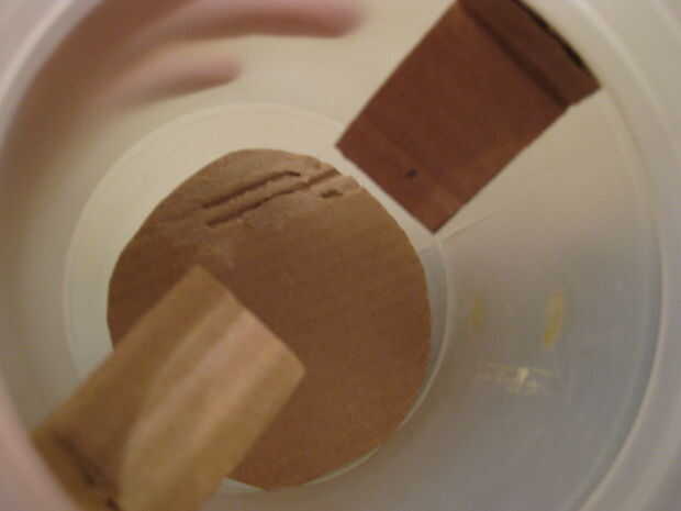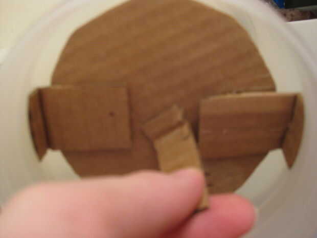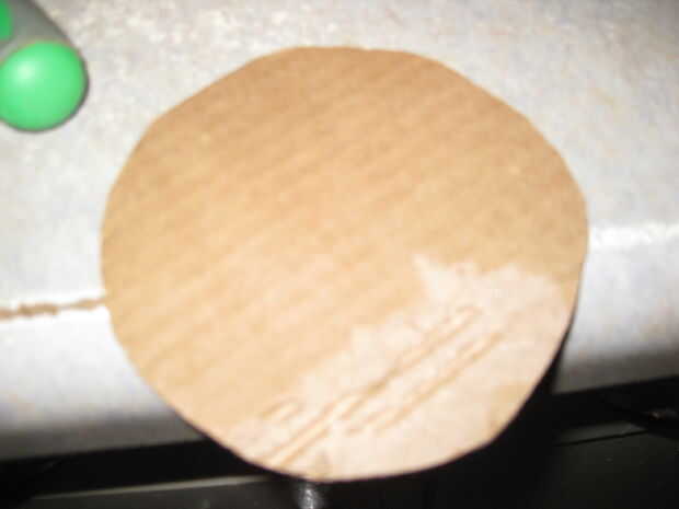 a continuación cortar una pieza redonda de cartón para caber dentro de su envase,