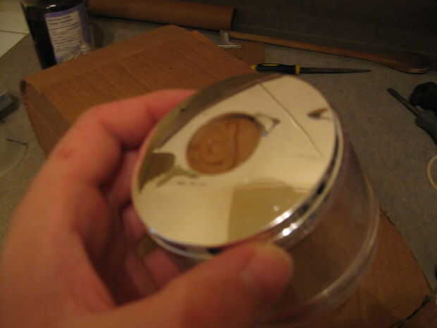 tomar la otra pieza de la linterna y pegar un pequeño trozo redondo de cartón para cubrir el agujero en la parte inferior como se muestra arriba,