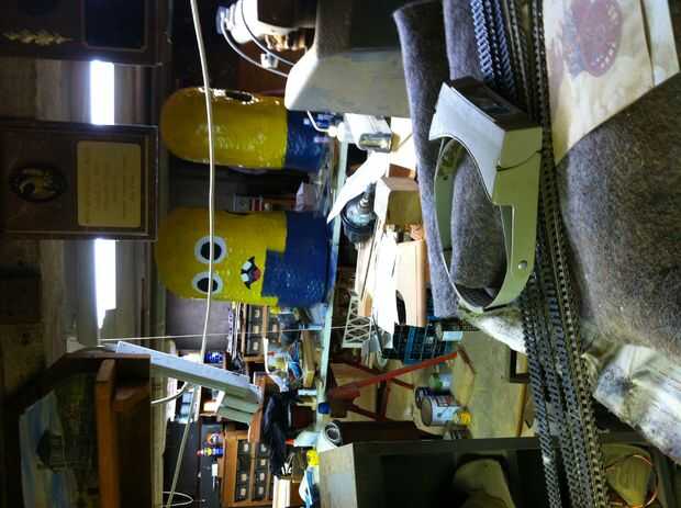 La forma principal es simplemente pollo alambre formado en un tubo y luego se inclinó sobre en la parte superior para formar una cúpula. Los agujeros fueron cortados para los brazos. Todos los bordes que puedan tener las brocas afiladas eran entonces conducto grabado encima. Lo entero fueron cubiertos con papel maché. No hubo ningún tipo de arnés para mantenerlos en el lugar correcto. Simplemente permitimos que las tapas de los agujeros en nuestros hombros.