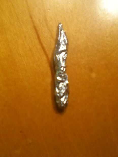 Para los brazos y las piernas, vamos a utilizar las balas de nerf y el papel de aluminio. En primer lugar el extremo de la bala. luego tomar un papel de aluminio y envuélvalo en como un palillo donde apenas puede deslizar a través de la bala así es bastante fuerte plegado y doblado en la bala. Hacer dos de ellos. Ahora toma otra bala y cortar dos pulgadas de largo. Hacer dos de ellos. No tienes que poner papel aluminio en aquellos.