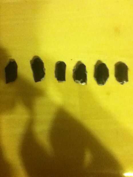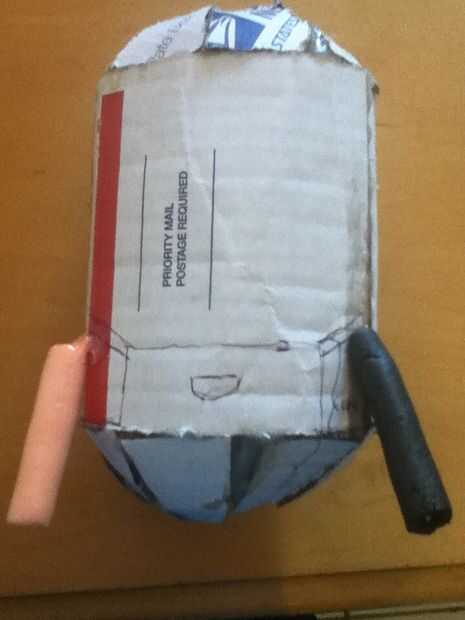 Pegamento caliente los brazos seis centímetros por encima del fondo. Luego pegamento caliente las piernas cinco centímetros aparte. Ahora hacer una cantidad de centímetros de hoja de lata como se muestra. Hacer seis de estas. Después de eso, cubrir en cinta negra y cinta en conjunto de tres y con cinta adhesiva en los extremos de los brazos
