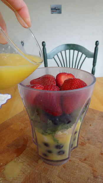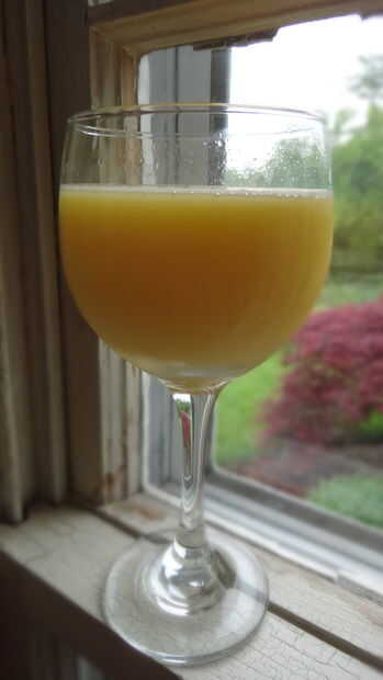 -6 onzas de fresco jugo de naranja exprimido. Usted puede hacer con secciones de naranja frescas también, pero pueden degustar "granulada".