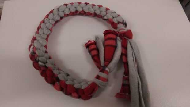 Vi un juguete como este en una casa de amigos y creo que la compraron en alguna parte. Tenía los materiales en casa y decidí probar lo que es yo mismo. Fue fácil de hacer, durable, y disfrutan de mis cachorros los componentes del juguete de tela suav
