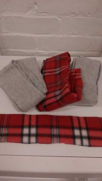 Cortar 4 tiras de tela de paño grueso y suave, cada uno de aproximadamente 3" de ancho. El paño grueso y suave que utilicé fue 5' justo al lado del perno, así que simplemente guardé esa longitud.