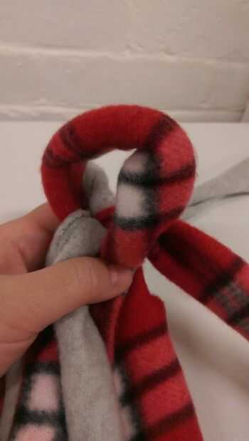 Vi un juguete como este en una casa de amigos y creo que la compraron en alguna parte. Tenía los materiales en casa y decidí probar lo que es yo mismo. Fue fácil de hacer, durable, y disfrutan de mis cachorros los componentes del juguete de tela suav