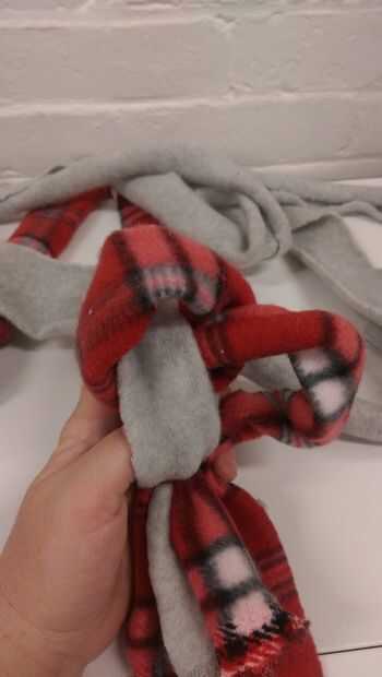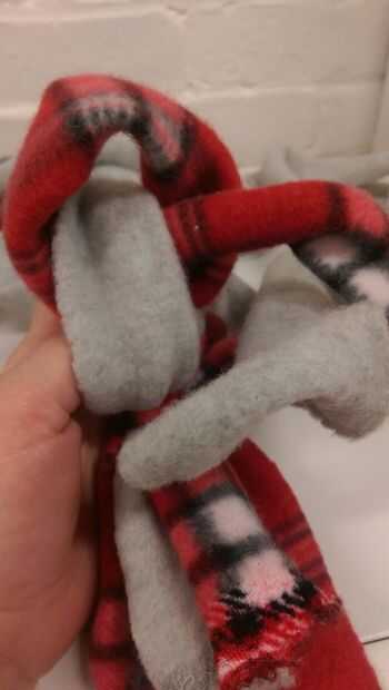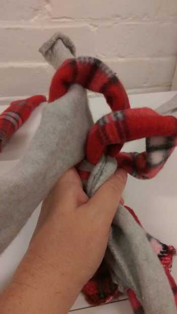 Vi un juguete como este en una casa de amigos y creo que la compraron en alguna parte. Tenía los materiales en casa y decidí probar lo que es yo mismo. Fue fácil de hacer, durable, y disfrutan de mis cachorros los componentes del juguete de tela suav