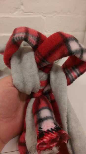 Vi un juguete como este en una casa de amigos y creo que la compraron en alguna parte. Tenía los materiales en casa y decidí probar lo que es yo mismo. Fue fácil de hacer, durable, y disfrutan de mis cachorros los componentes del juguete de tela suav