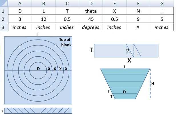 - Jugar con el ángulo de corte (theta) hasta que estés satisfecho con la altura final del tazón de fuente.