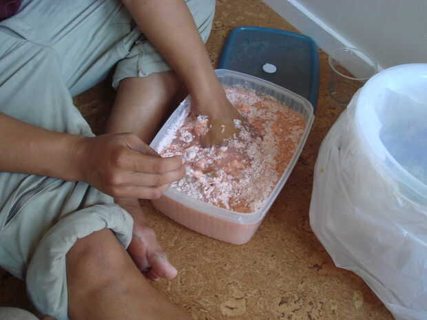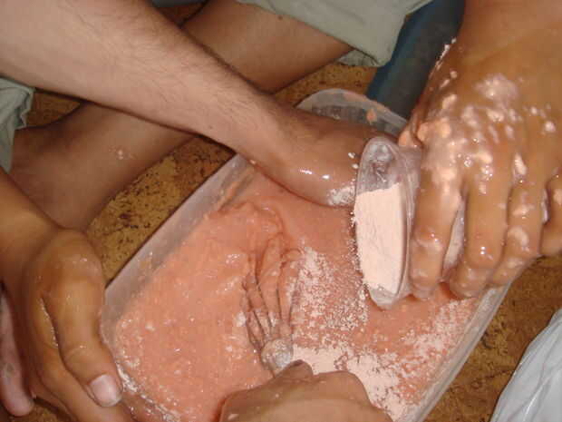El alginato empieza a asombrosamente rápidamente, así que no esta parte enérgicamente.