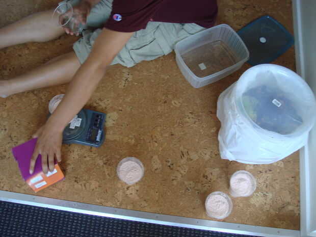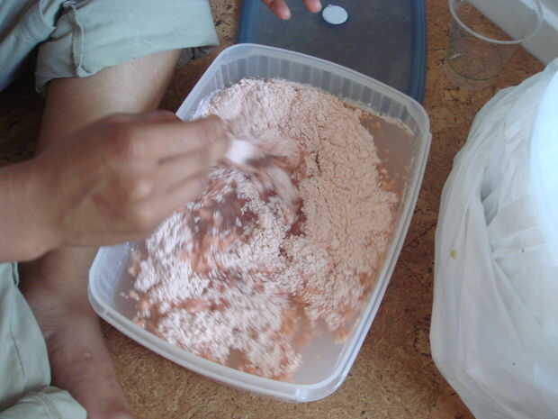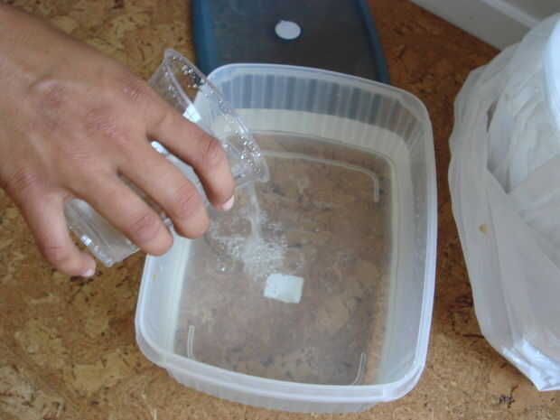 Medir la cantidad de alginato que desea y mezcle con una cantidad igual de agua por volumen.