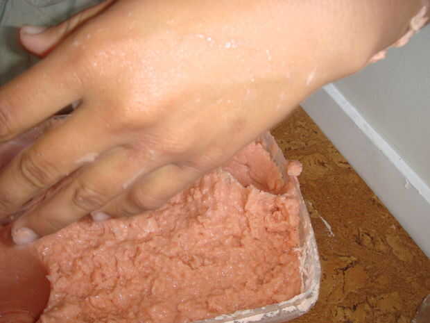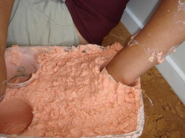 El alginato jalea-molde era totalmente endurecido, pero todavía capaz de flex lo suficiente como para dejar que mi mano libre con algunos agitaban vigoroso.