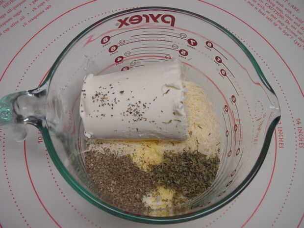 1. poner los ingredientes, excepto los fideos, en una taza medidora de 2 cuartos. Mezclar bien y marque más o menos porciones, ocho o diez.