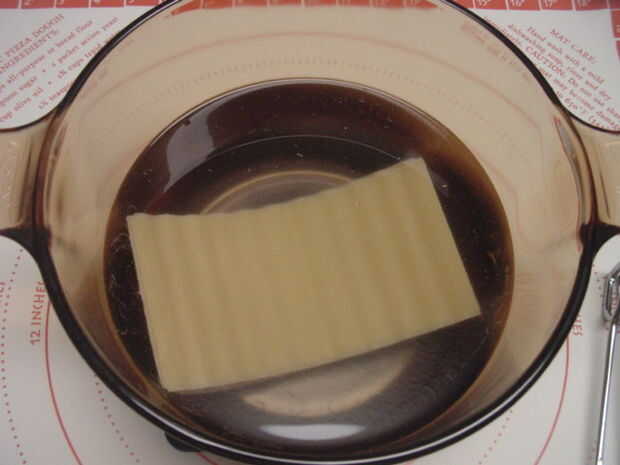 3. calentar seis tazas de agua en una taza medidora de 2 cuartos en el microondas durante 12 minutos en High. Manejar con almohadillas y en un soporte. Resolver cada uno de los tallarines en el agua. Cuando se dobla añadir otro. Continuar para todos los fideos. Cuando los tallarines pasado son simplemente flexible, retire y vacíe todos los tallarines (unos dos minutos después el último de los tallarines).