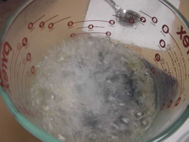 3. en otra medida de vidrio de 2 cuartos de galón, combine el agua y aceite. Microondas cubierta en alto por 6 minutos.