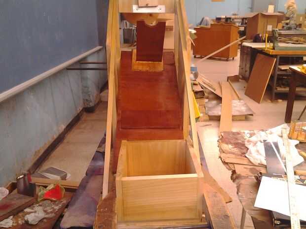 2. se puede establecer la columna vertebral dentro del marco, dejando la parte superior de la misma descansa sobre el soporte horizontal elevado 15" de la tierra y la parte inferior se basaba en la última base de apoyo horizontal. No necesita ser clavado todavía, pero proporciona buena fuerza horizontal mientras trabajas en otras partes.
