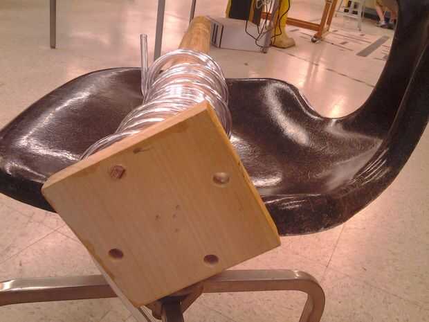 3. corte un tubo sólido estable de radio 1.5" a 34" longitud y clavo uno de los engranajes cuadrados se monta en él. Recuerde al centro para tener el correcto movimiento circular. Este tubo largo es el tornillo principal que trae el agua hacia arriba.