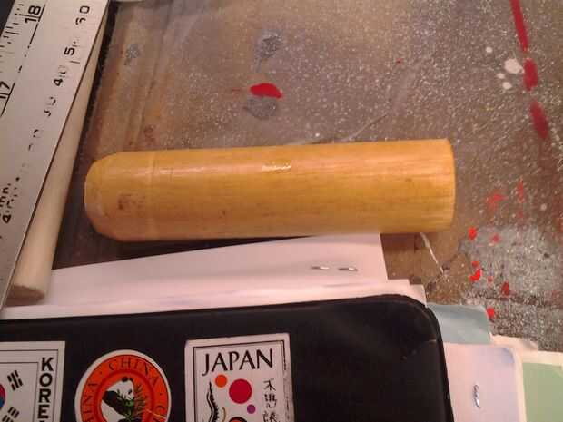 • El cilindro hueco es 4" largo cortan 40 grados desde la horizontal. Su diámetro externo es de 2 ½" y el interior diámetro es 1".