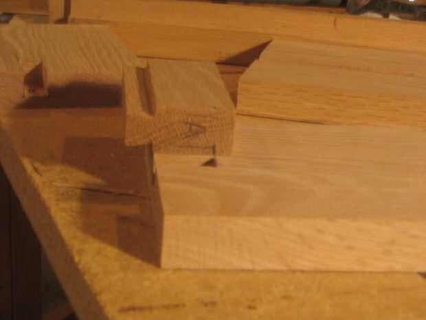 Use la escuadra de combinación para encontrar la profundidad de la muesca. Marca esto en la parte superior de la guía. Ahora debe tener marcas que describen el perno que va en la ranura.