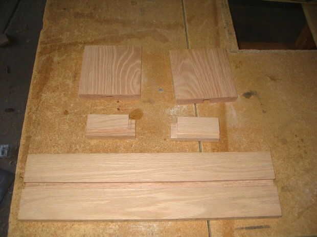 La foto muestra las piezas ya terminadas. Me olvidé de tomar una foto antes de que empecé a trabajar en él. No estoy esperando la madera con las clavijas y ranuras ya en ellos. Eso sería un pésimo instructable.