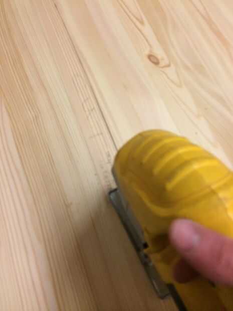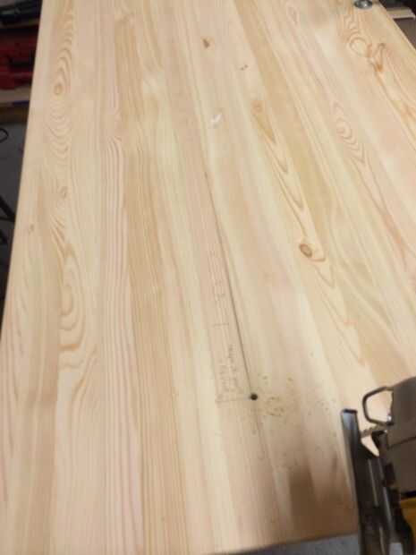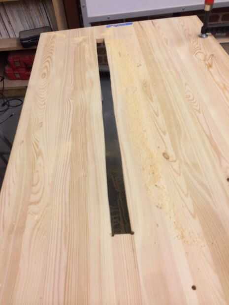 Cortamos esta ranura por 4 agujeros en la tabla en las esquinas del corte previsto y utilizando un jig Sierra para cortar la ranura rectangular.