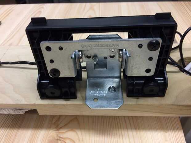En primer lugar, retire el soporte de metal de su entorno plástico. Usted verá que los soportes son capaces de girar, pero sólo dentro de la gama determinada por los dos bordes de metal. Estos bordes pequeños necesitan ser dobladas fuera de lugar para permitir el soporte girar 180 grados. Utilizamos un martillo para doblar los bordes del camino.