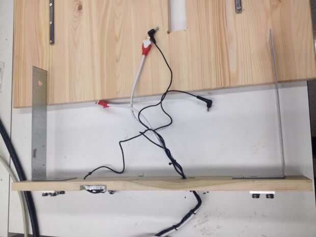 1. Deje espacio de acceso al botón de encendido en la parte inferior de los monitores por compensación a los monitores sobre el borde de la base de madera.