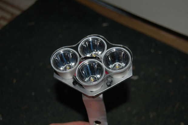 Otra consideración de diseño importante para mi sistema era la disipación de calor. Necesitaba aproximadamente 1 pulgada cuadrada de la pulgada de aluminio por vatio, basada en mis lecturas, pero no quiero un disipador de calor pesado allá arriba sobre mi cabeza. Créanme, he sido montar durante dos años con tres luces comerciales en mi casco. Overweights el casco y realmente trabaja espalda y cuello en largos paseos. Mi nuevo marco es todo un disipador grande que funciona sorprendentemente bien.
