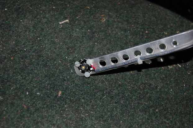 Una consideración de diseño importante en mi sistema de iluminación fue de restos de naufragios. Sistemas comerciales se diseñan para esquilar apagado su casco en el caso de un accidente con el fin de minimizar el daño del casco o del cráneo. Todos mi aluminio fue atornillado con tornillos #4 no más de tres para facilitar la rotura en el impacto, pero no durante el uso normal. Además, los componentes no estructurales, incluyendo LEDs fueron montados usando los tornillos de Nylon para eliminar los cortocircuitos debido a montajes inadecuados.