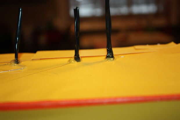 Para hacer el pelo, tomar dos clips de papel y doblarlos rectos. Luego, poner los clips de papel en la cinta eléctrica y cubrir cada clip de papel con la cinta aislante. Luego, cortar cada clip de papel en tercios. Ahora puede pegar estas en su cabeza. Se trata de su cabello.