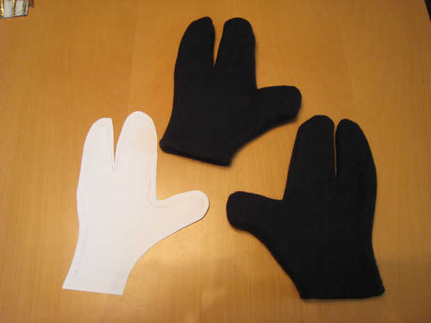 Súbditos sólo tienen tres dedos, lo que los guantes estaban hechos para emparejar. Ver imagen... pero básicamente trazar a mano y dejar espacio suficiente para coser y poner en.