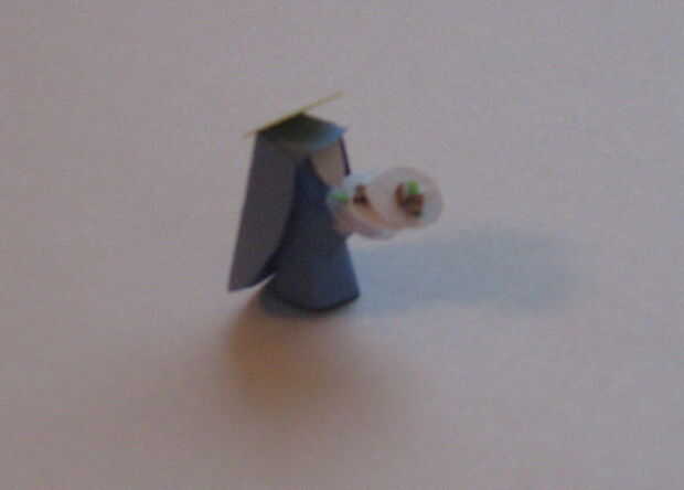 Pegue el togetehr placas con un pequeño trozo de papel blanco en el medio para darles cierta profundidad. Pegamento en la parte delantera de la figura.