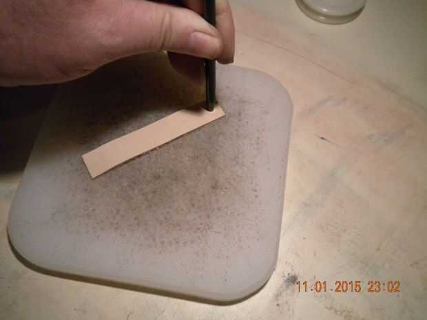 Perforar un agujero en cada extremo, aproximadamente 1/4" en de extremo--ahora que suficientemente los orificios no rasgón hacia fuera cuando usted atar juntos--y apenas grandes bastante para tirar una aguja con tendones o hilo a través de él tres o cuatro veces.