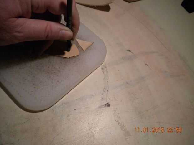 Ajuste la correa para mira a la derecha, si quieres en bisel los extremos y los agujeros. Movimiento de izquierda a derecha me Perfore orificios de 1" y 6.5" desde la izquierda y 1/2" desde el extremo derecho.