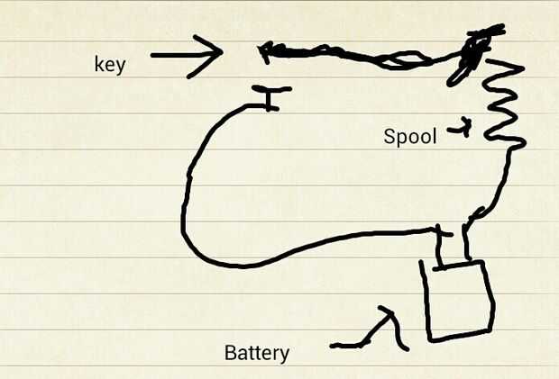 Tomar el bloque plano de madera y poner sobre una superficie dura y plana. Ahora toma los clavos y la batería de 9 voltios. Coloque la batería sobre una parte de la Junta y poner clavos alrededor de la batería para mantenerla en su lugar. Asegúrese de no perfore la batería. Si se hace correctamente, usted debe ser capaz de cambiar todo el tablero boca abajo y la batería todavía. Ahora toma un clavo y martillo aproximadamente una pulgada del extremo de la terminal de la batería +. Envuelva un trozo de alambre en el último clavo que pones y cuando termines wraping, deje suficiente cable para llegar a la terminal de la batería. Para la clave, (que es lo que presiona hacia abajo) se puede utilizar un clip o una llave pequeña. clave puede pulsar uno de los extremos y dejar pasar, volverá a su posición anterior. también puede utilizar un resorte de un bolígrafo. Tome un pedazo de alambre y attatch de un extremo a la bobina y el otro a la clave. Casi listo! Poner un clavo en el extremo de la llave para que cuando presione la tecla, se toque la uña. poner uno de uñas tocar el terminal - de la batería. tomar una pieza más del alambre y ejecutarlo-terminal clavo la uña bajo la clave y tu listo!