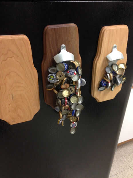 Imanes y cerveza... ¿Qué podría ir mal? Esto puede ser un gran proyecto poco que añade a su cocina o taller (donde usted prefiere tener una fría) una sensación de restaurante. El abrelatas de botella adhieren a cualquier superficie de metal ferroso, como acero o hierro, incluso una puerta de nevera! Los imanes pueden contener un montón de tapas de botellas, para que no tenga que preocuparse de tener que limpiar apagado a menudo.
