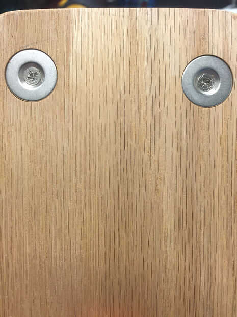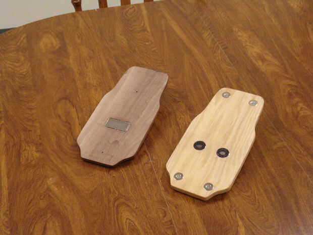 Los anillos avellanados simplemente se atornillan en la madera con un tornillo de cabeza plana #8. El imán de bloque grande o los dos discos se ajustaron en su lugar. Se utilizó un fuerte epoxi de dos partes. También podría trabajar en pegamento.