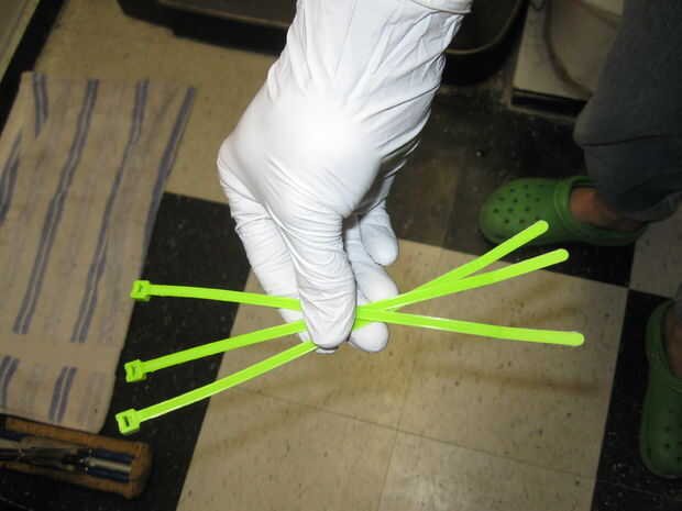 Este paso es muy fácil: coge unas ataduras de cremallera y un cortador de alambre. Si usted tiene unos extra largos que sobre, coge uno de ellos.